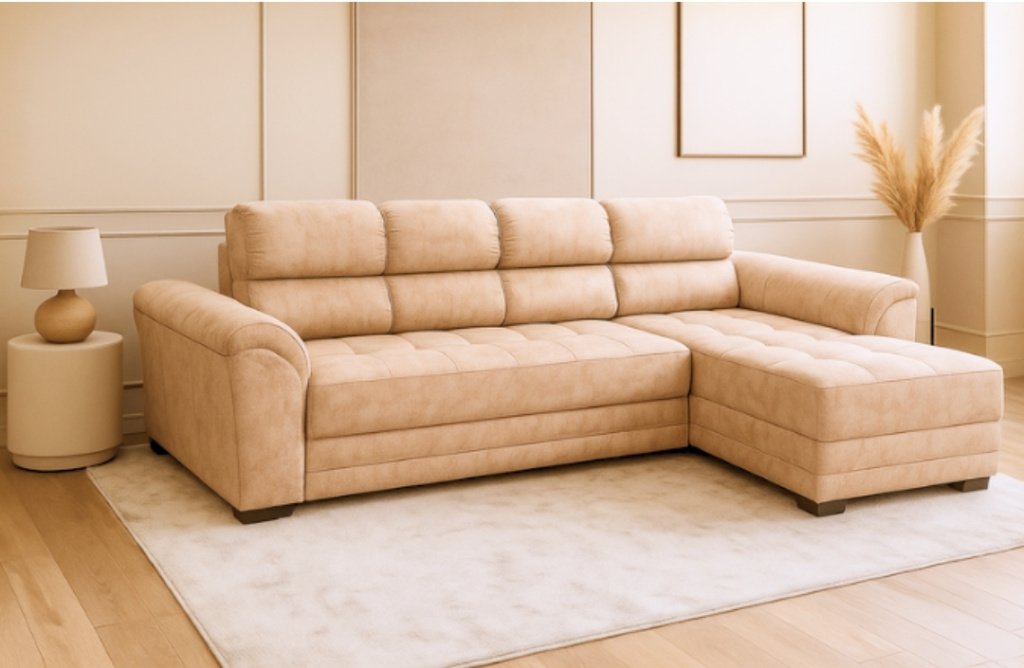 Sofá Nova Lounge 3P . Con 3 puestos amplios y chaise longue, ofrece el lugar perfecto para relajarte o compartir en familia, textura elegante, fácil limpieza y gran resistencia. Con respaldo alto, estructura sólida y espuma de alta densidad para una comodidad duradera, Fabricación Nacional.